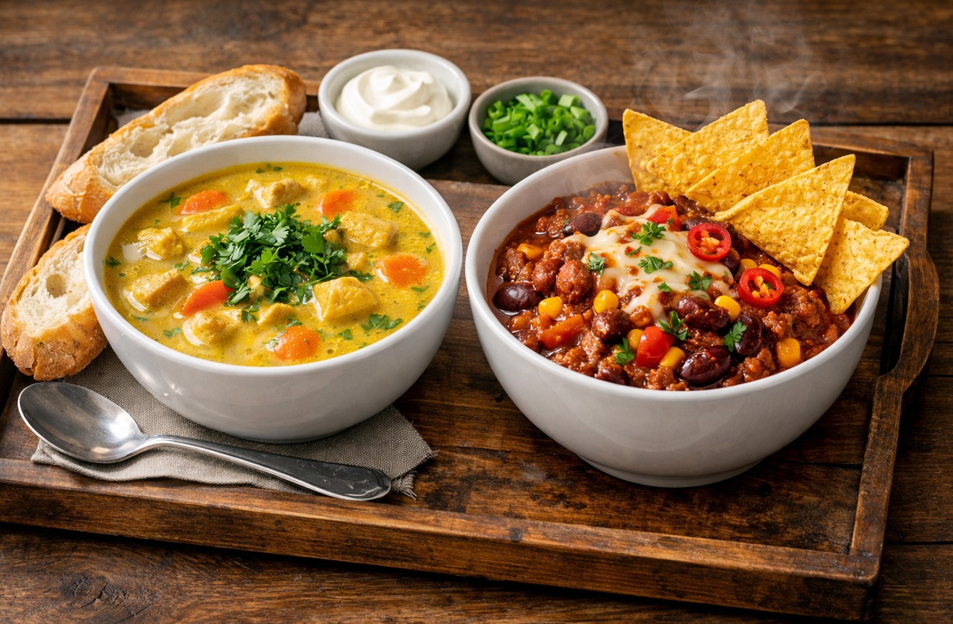 Her servere de en lækre aftensmåltid til favorable priser. Man kan vælger mellem 2 klassiske vinter retter – Chilli con carne eller Kylling Karry suppe.